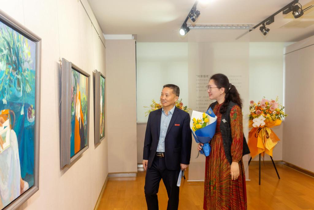 开幕式上,温波发表致辞,充分肯定了佟荣亮深耕美术教育、融汇江南文化与当代美学的艺术实践,并指出此次展览不仅是其个人艺术探索的集中呈现,也是推动“美育浸润”从校园延伸至社会的重要窗口。他强调,学校积极推动艺术创作与学术研究的融合,加强艺术与科技等前沿领域的跨学科合作,进一步拓展社会美育的广度与深度,营造充满活力的创新文化氛围。
