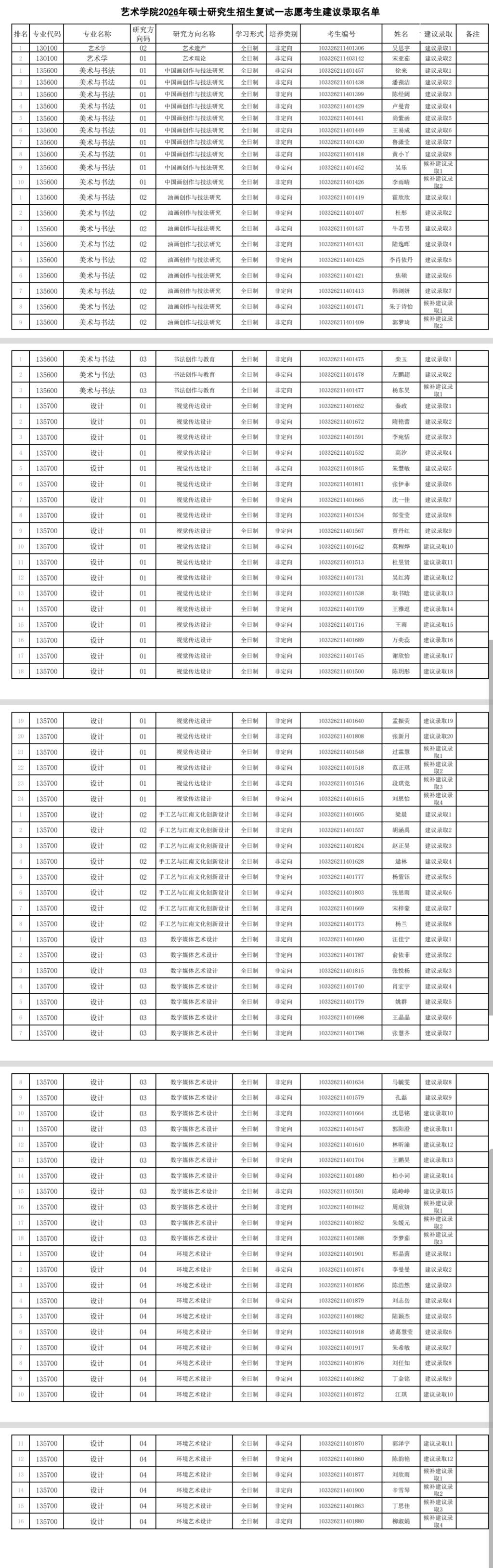 线上娱乐 2026年硕士研究生招生复试一志愿考生建议录取名单